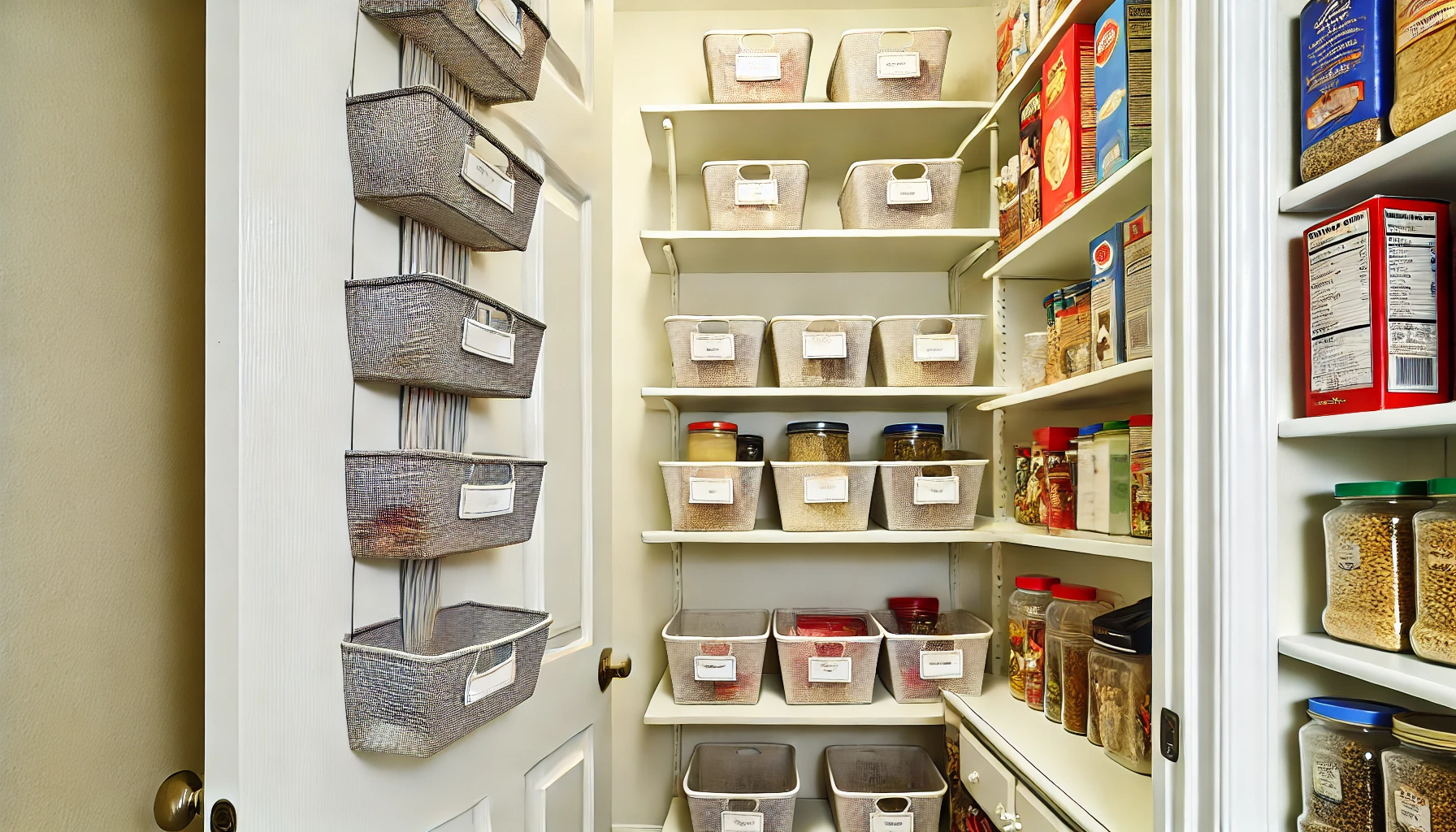- 문 수납과 걸이를 통한 추가 공간 확보. 팬트리 문은 수납 공간으로 자주 간과되곤 합니다. 문 수납장이나 걸이를 활용해 가벼운 물건(예: 양념 팩, 랩, 작은 병)을 걸어 두면 소중한 선반 공간을 차지하지 않고도 물건을 쉽게 접근할 수 있습니다.