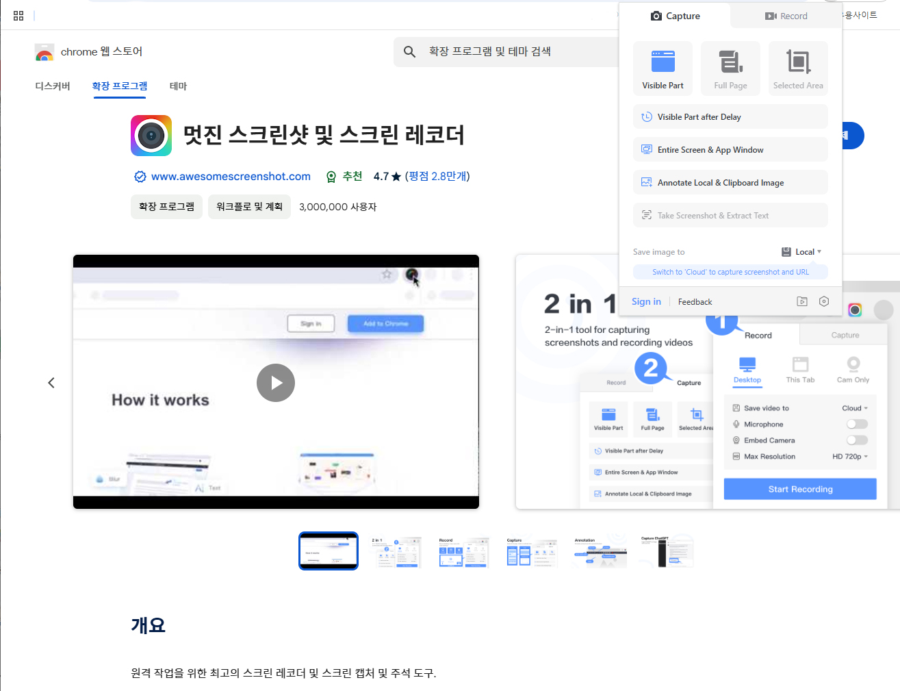 * 개인적 추천 확장 프로그램 : Chrome 크롬에서 화면 캡쳐