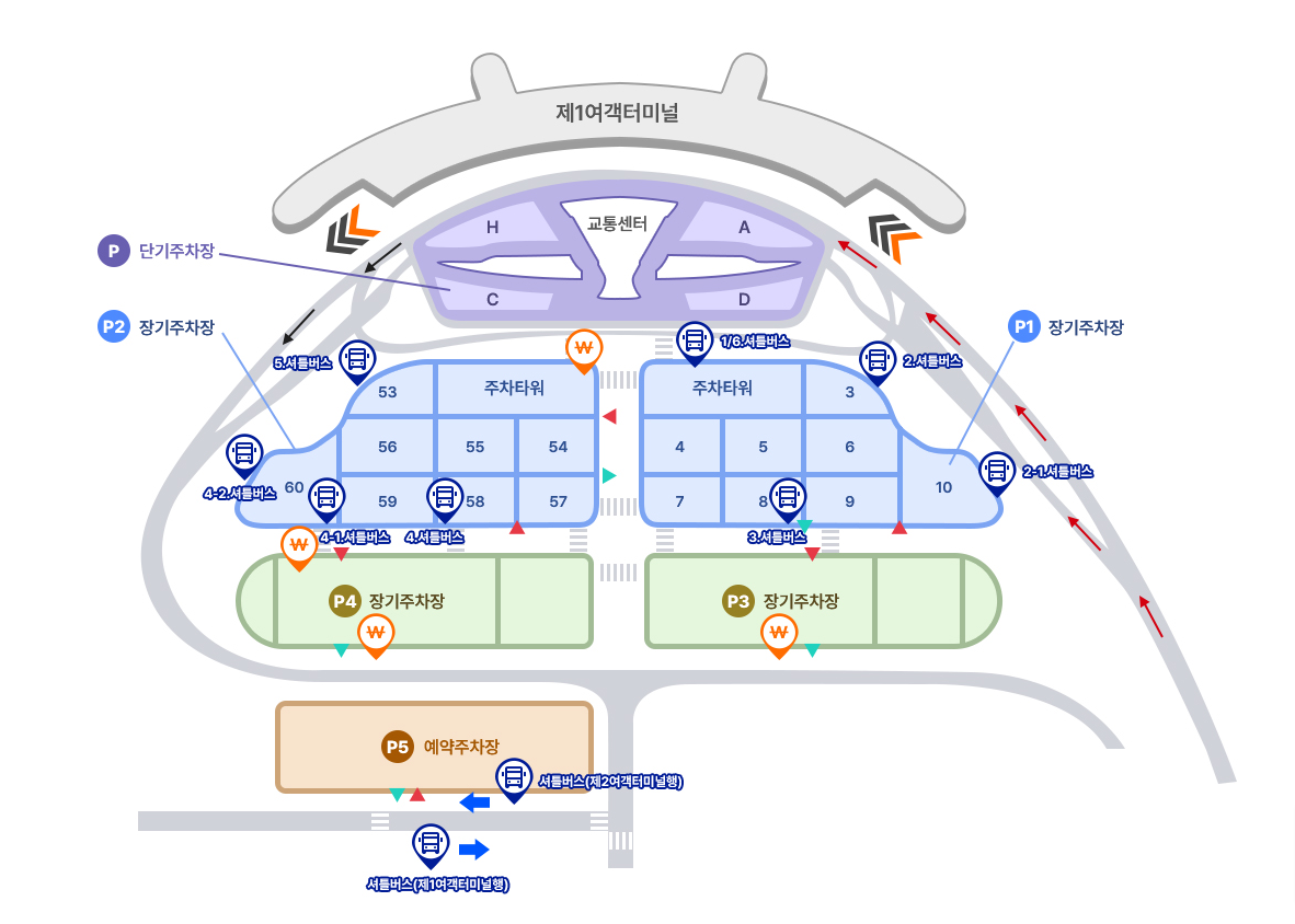 - 예약주차장과 장기주차장은 다른 주차장입니다. 위치를 혼동하지 않게 확인하시기 바랍니다.